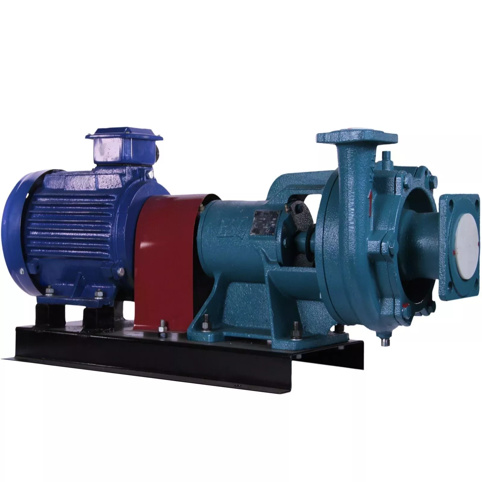 Насосы типа К (1К) монтируются на единой стальной раме. Привод осуществляется через упругую муфту. Это классическая промышленная схема, упрощающая замену двигателя и обеспечивающая надежную работу в тяжелых режимах.